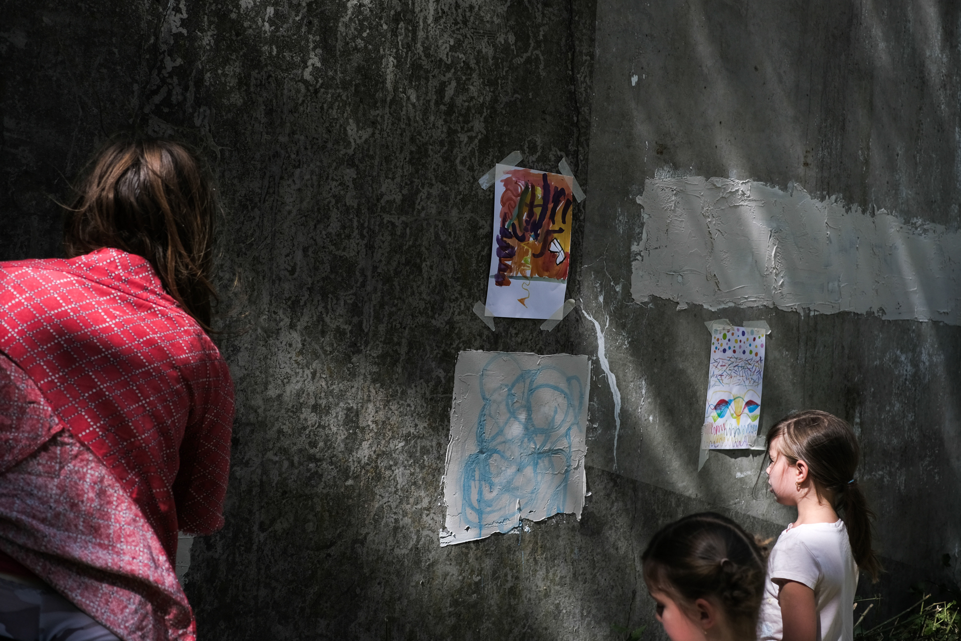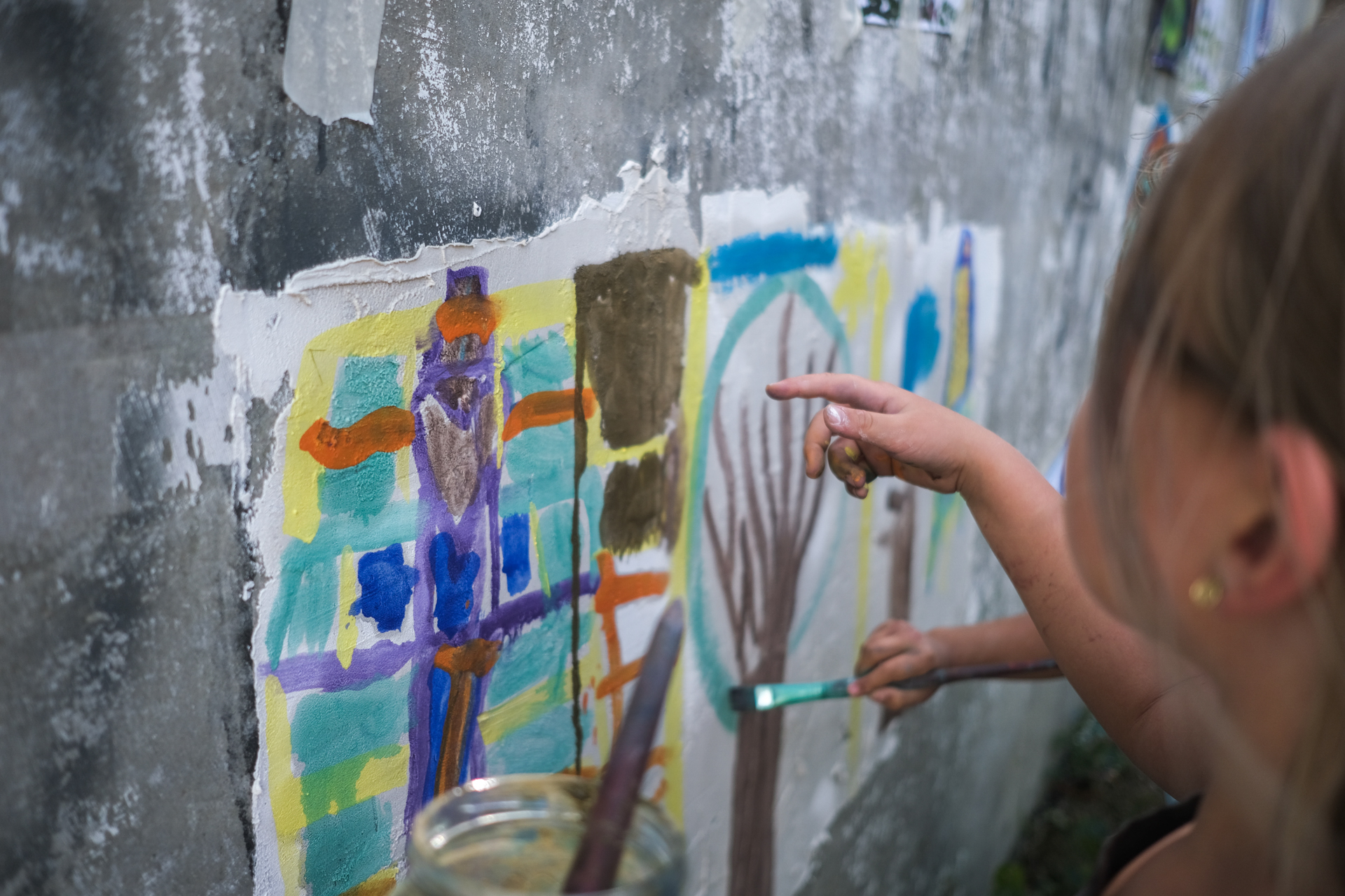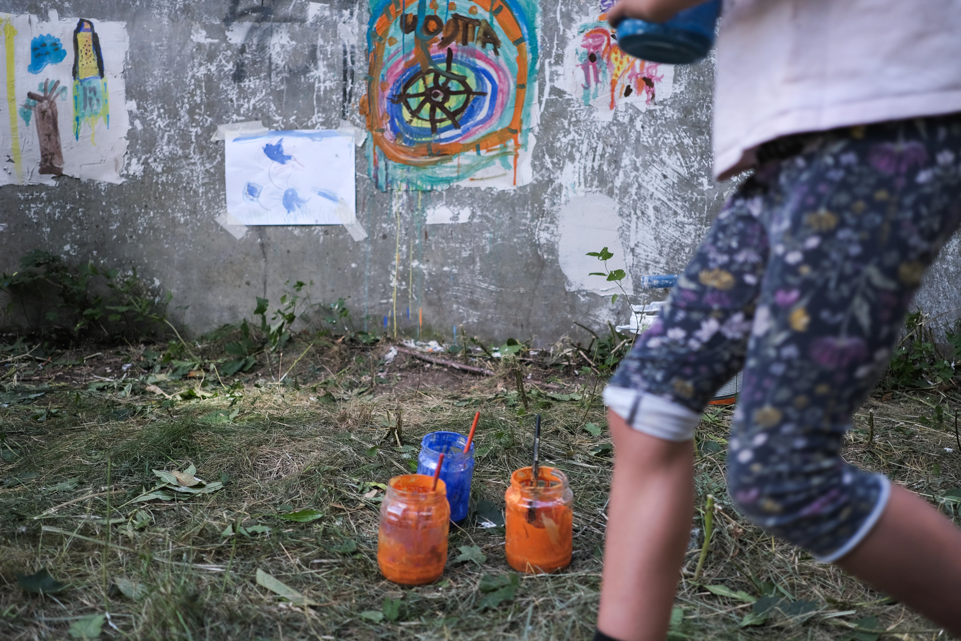 Workshop proběhl v rámci příměstského tábora pro děti ve věku 5-14 let, který organizovala GAMPA jako rozšíření Festivalu Tvárnost paměti. Společná freska vznikala během jednoho dne v Pardubicích na opuštěné zdi poblíž cyklostezky. Skicovali jsme za hezkého počasí v plenéru. Děti si v příjemném stínu rozmíchaly barevné pigmenty a vyzkoušely si práci se zednickými natahováky i špachtlemi. Výsledná malba je pestrá na motivy i barvy a je dále zanechána venkovním podmínkám i zubu času.