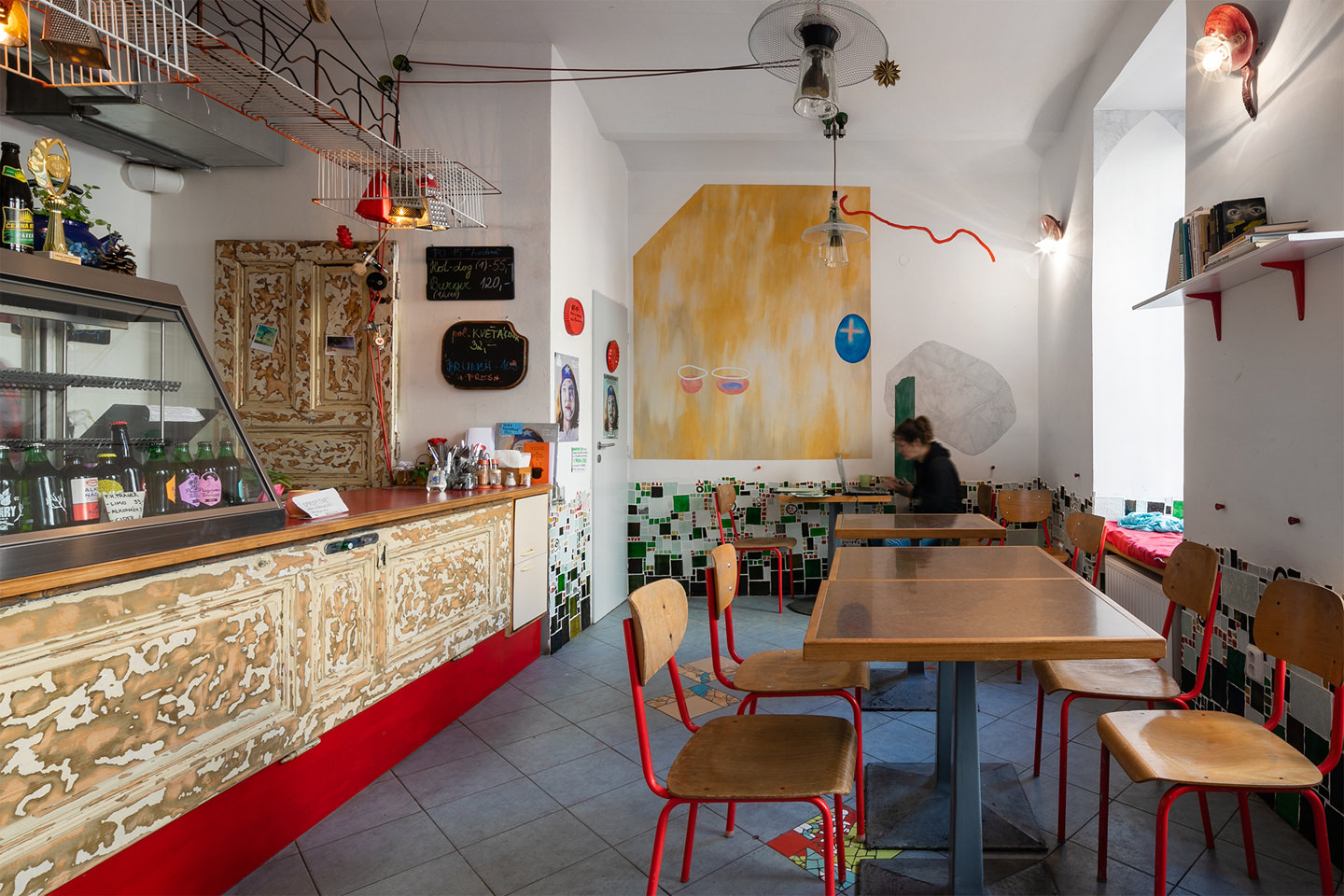 Jídelna kuchařek bez domova je místem pestrým, lahodným a bezpečným. Naše freska jen podtrhla pocity z tohoto pevného bodu na mapě kvalitních pražských restaurací se sociálním přesahem. Ve fresce se objevuje náznak pevného, přívětivého domu, posvěcený chléb, dvě misky a balíček s rozvázanou mašlí.
