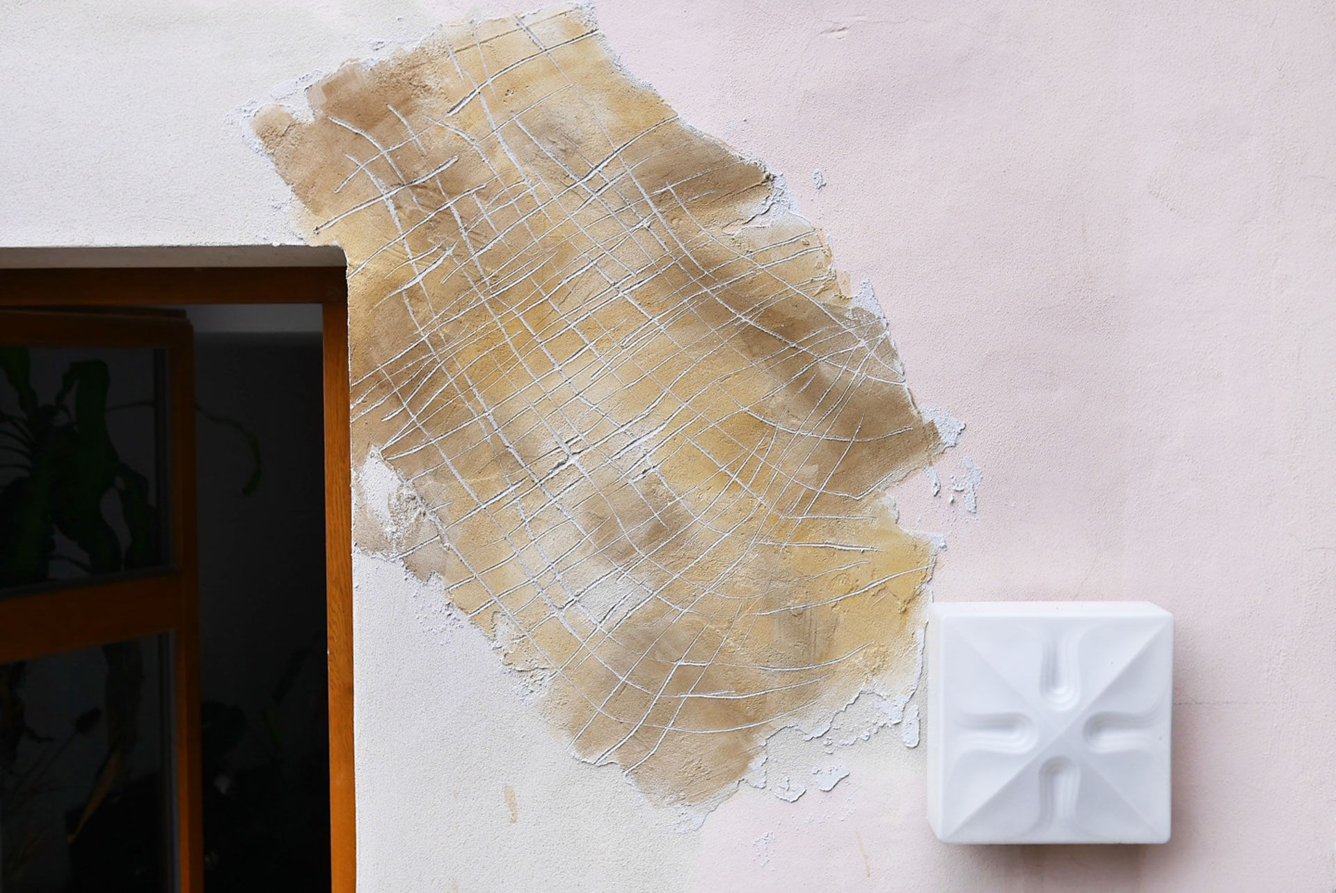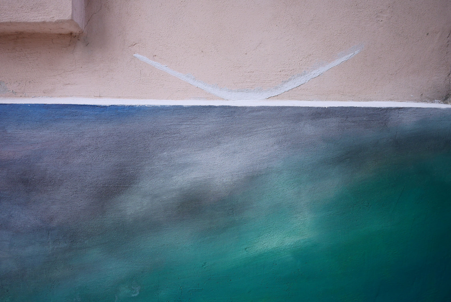 Terasu, tento intimní prostor určený pro relaxaci jsme proměnily malbou kusu nebe, které jsme posadily k podlaze. Spolu s kusem plátýnka a ratolestí se rozehrála nová etapa pro kočičí řádění v této vlahé zahradě. Hájemství uprostřed rušného města.