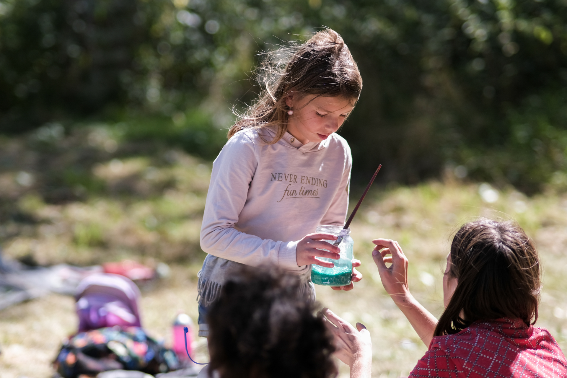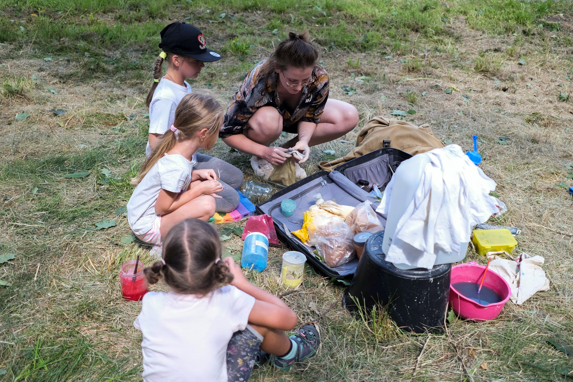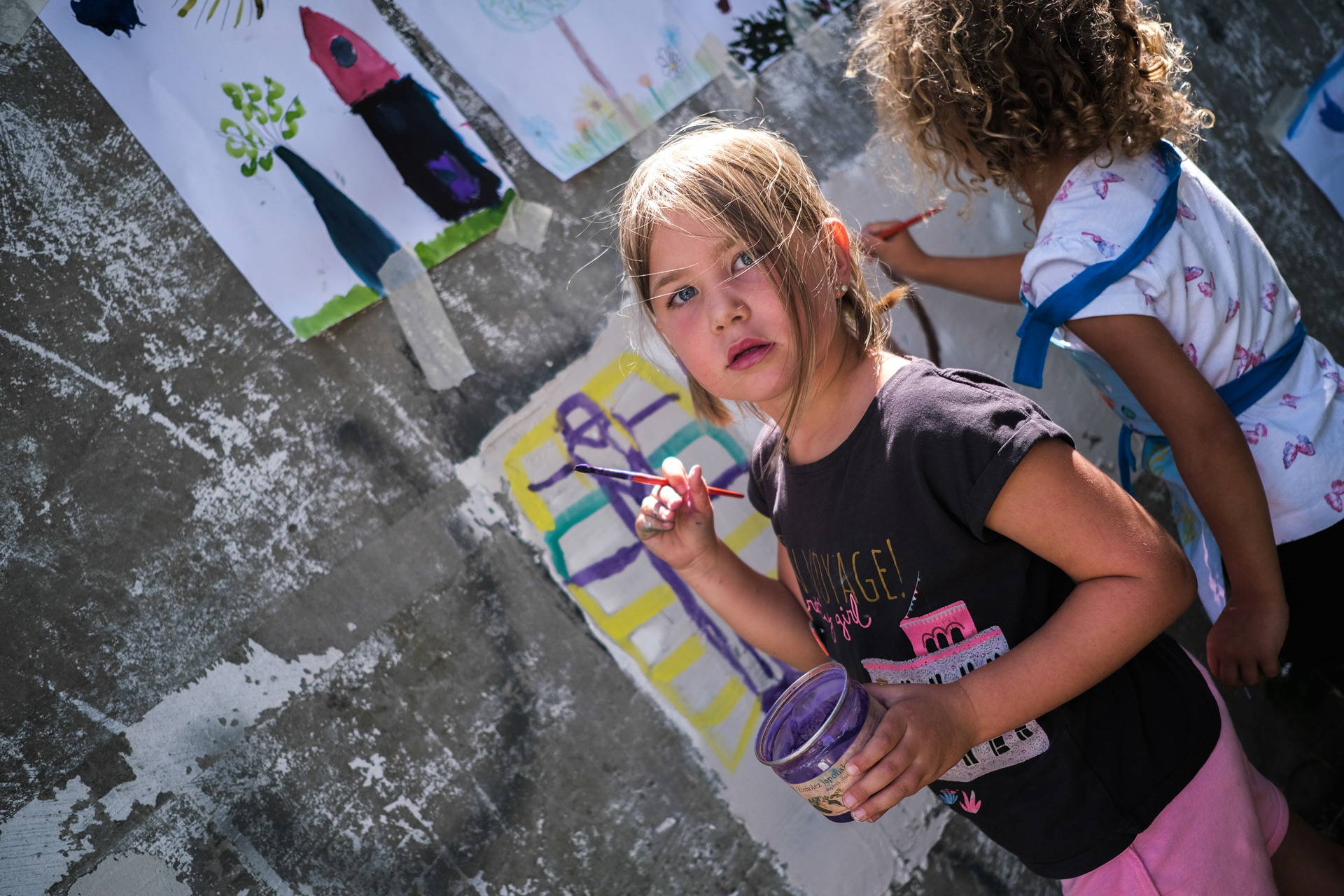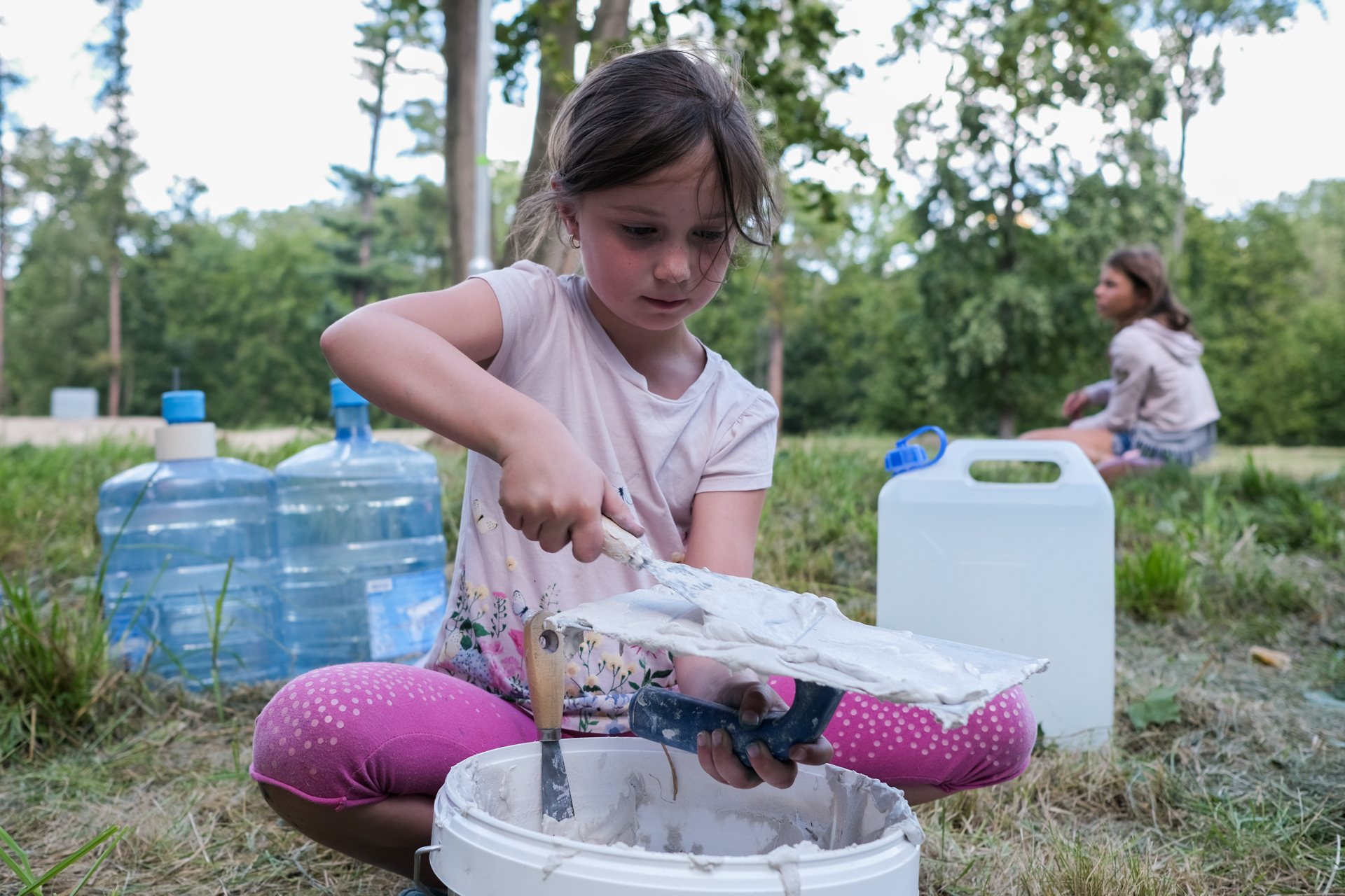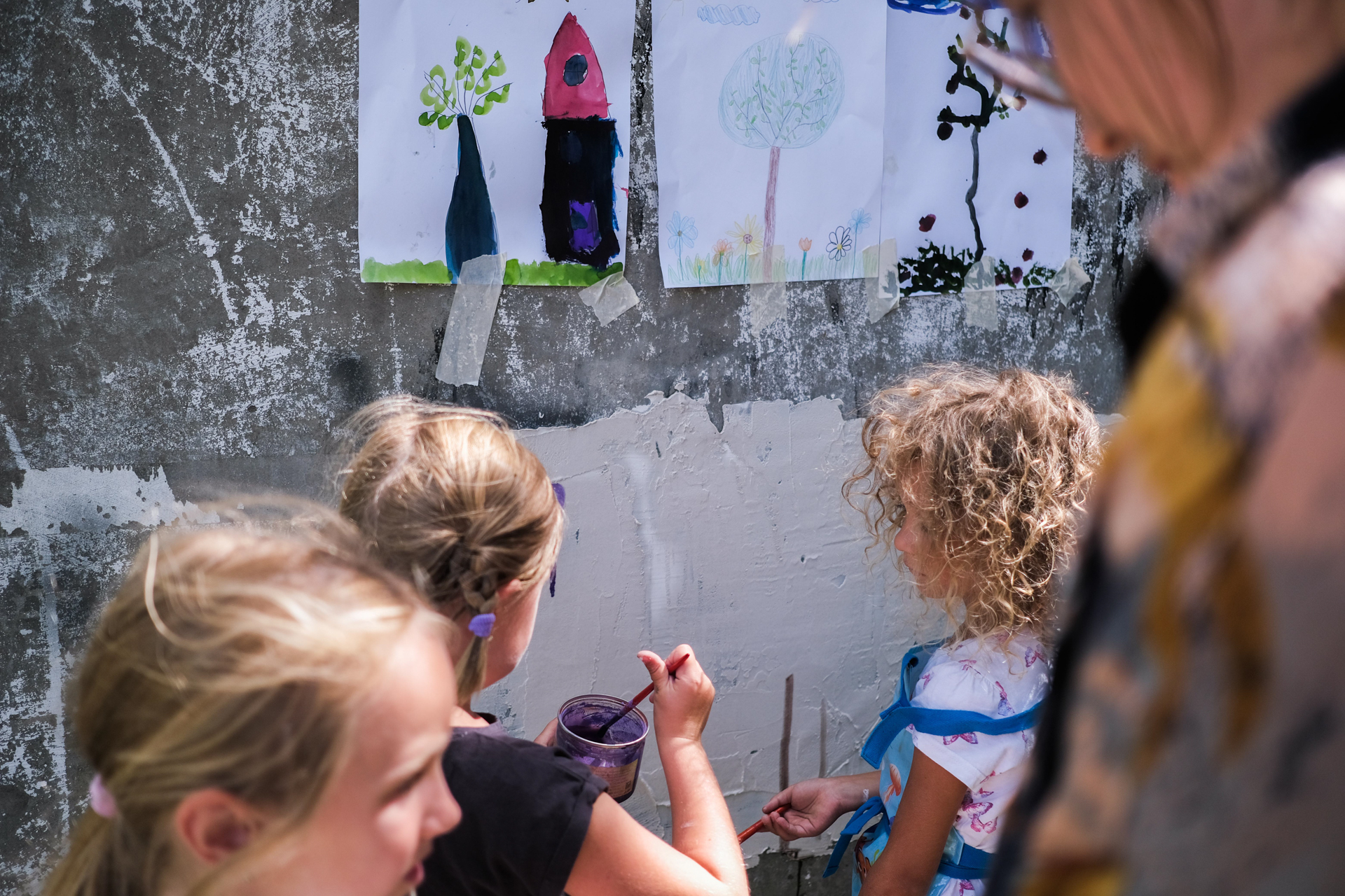 Workshop proběhl v rámci příměstského tábora pro děti ve věku 5-14 let, který organizovala GAMPA jako rozšíření Festivalu Tvárnost paměti. Společná freska vznikala během jednoho dne v Pardubicích na opuštěné zdi poblíž cyklostezky. Skicovali jsme za hezkého počasí v plenéru. Děti si v příjemném stínu rozmíchaly barevné pigmenty a vyzkoušely si práci se zednickými natahováky i špachtlemi. Výsledná malba je pestrá na motivy i barvy a je dále zanechána venkovním podmínkám i zubu času.