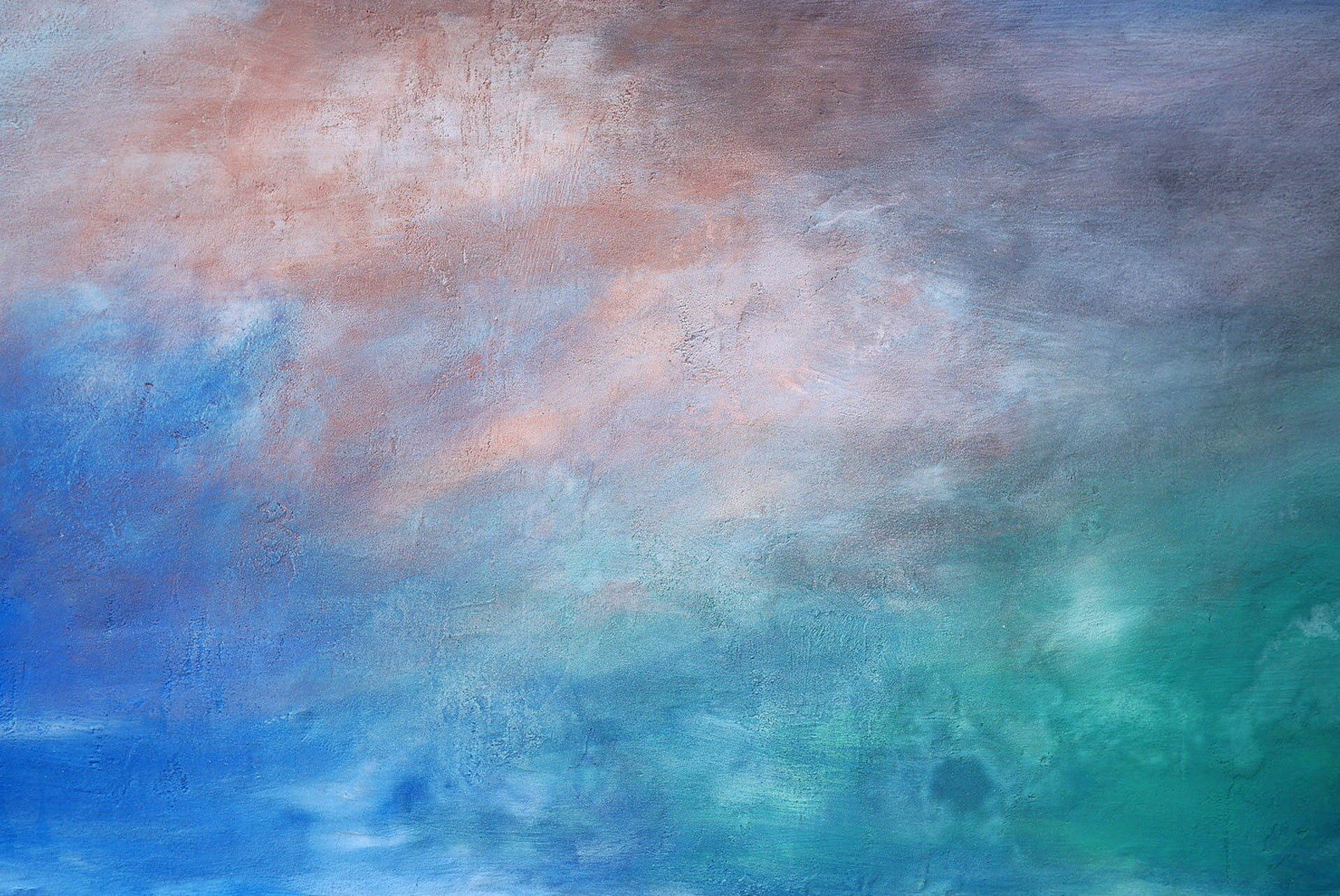 Terasu, tento intimní prostor určený pro relaxaci jsme proměnily malbou kusu nebe, které jsme posadily k podlaze. Spolu s kusem plátýnka a ratolestí se rozehrála nová etapa pro kočičí řádění v této vlahé zahradě. Hájemství uprostřed rušného města.